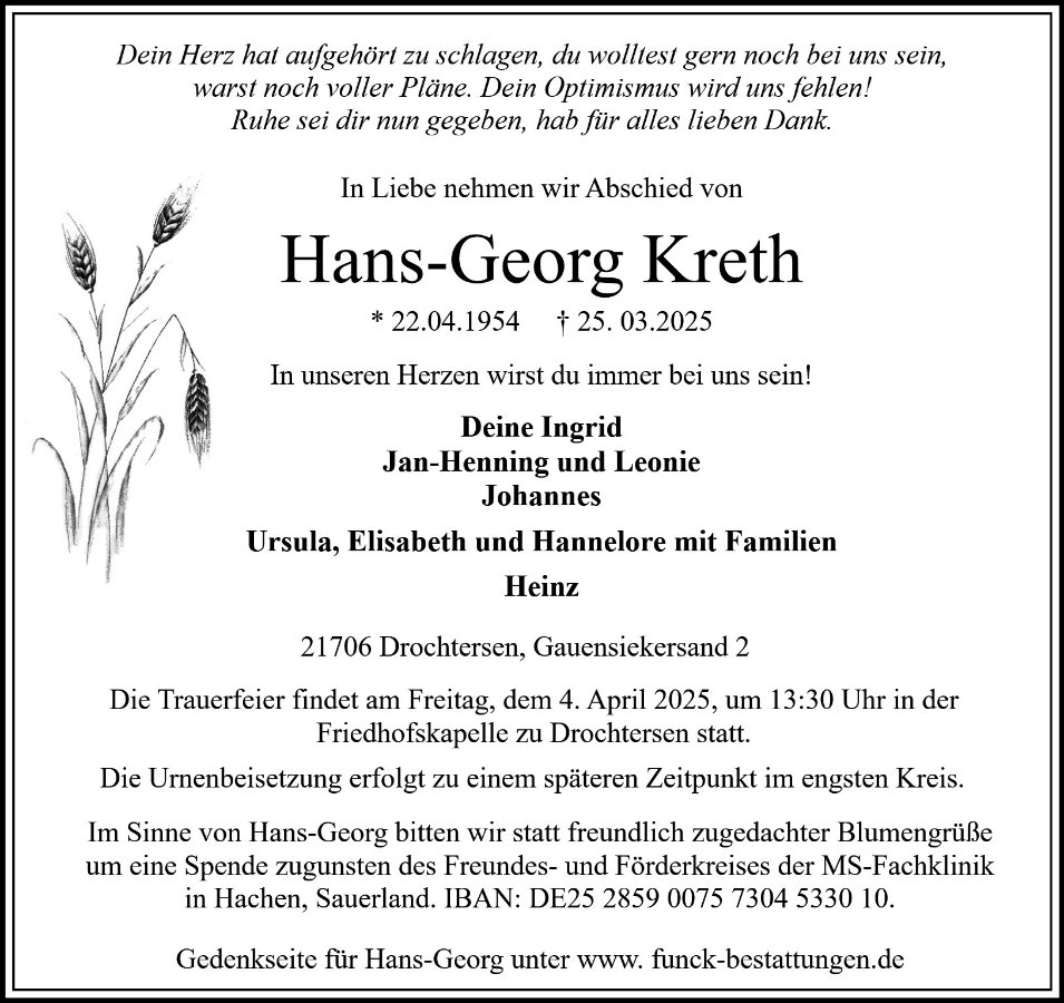 Ich habe Hans Georg während einer Tablettenstudie beim Neurologen kennengelernt. Wir saßen nebeneinander im Wartezimmer und stellten fest, dass wir beide Landwirte sind. Wir hatten sehr häufig gleichzeitig Termine und haben uns die Wartezeit damit vertrieben über Landwirtschaft zu reden. Das war sehr interessant. Nie vergessen werde ich auch eine gemeinsame Taxifahrt zu einem Neurologen in Oldenburg, im Rahmen der Studie.