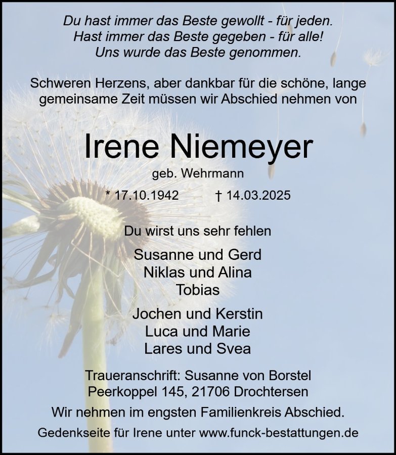 wir wünschen Ihnen von Herzen viel Kraft, dass Sie Menschen um sich haben, die Ihnen in dieser schweren Zeit beistehen und Halt geben. Zusätzlich können Sie auf dieser Gedenkseite Erinnerungen teilen und so das Andenken gemeinsam wachhalten.